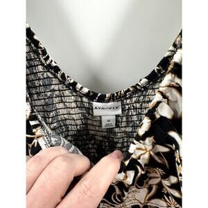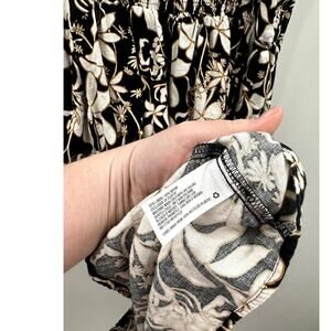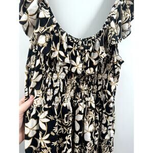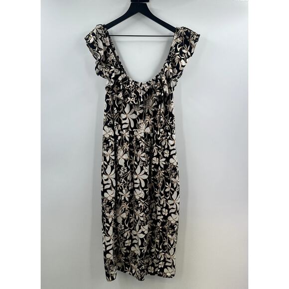 Ava & Viv 1X Black and Tan Floral Linen Blend Midi Ruffle Dress