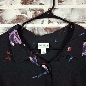 Ava + Viv 3X High Low Top Black Floral Button Down Long Sleeves