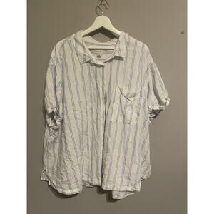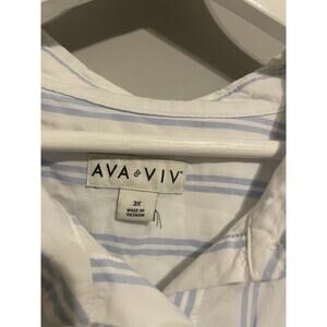 Ava & Viv 3X Oversized Shirt‎ No Gap Button-Up Top Striped Blouse Plus Size Blue