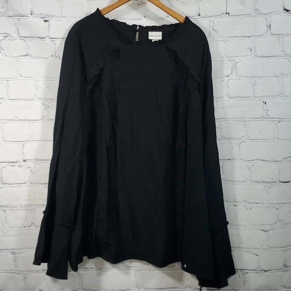 Ava &Viv Black Bell Sleeves Ruffled Trim Top