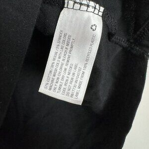 Good pre owned condition. Cotton, modal and spandex. Graphic is a white glitter.