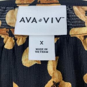 Ava & Viv Black Floral Print Blouse Size X (14W) NWT