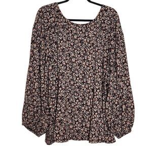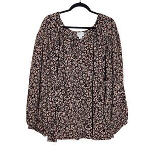 Ava & Viv Black and Brown Floral Blouse with Full Sleeves Size 4X Plus Size Top