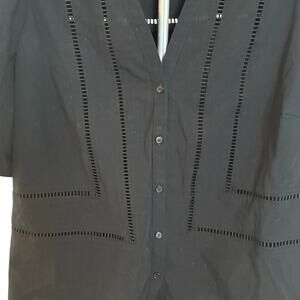 Ava & Viv Black cotton eyelet blouse XXL puff sleeve cottagecore