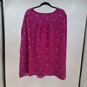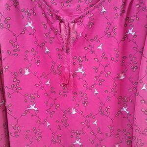 Ava & Viv Blouse Plus 4X Leaf Bird Print Tassel Tie Neck Long Sleeve Fuchsia