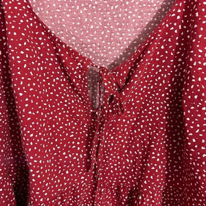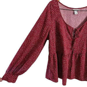 Ava & Viv Blouse Size 1X Red and White Dalmatian Spotted Peplum Ties Long Sleeve