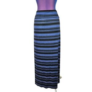 Ava & Viv Blue & Black Striped Stretch Maxi Skirt Size 1X Women's Plus J17