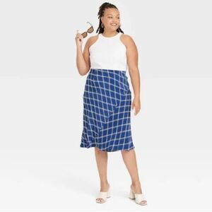 Ava + Viv Blue Plaid Women's Plus Size Midi Skirt, Size 1X, NWOT