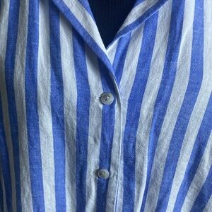 Ava Viv Blue White Vertical Striped Shirt V-Neck Short Sleeve Tie Waist NWOT