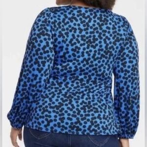 Ava & Viv Blue and Black Polka Dot Tie Front Blouse Sz 3x Work/Dressy Casual