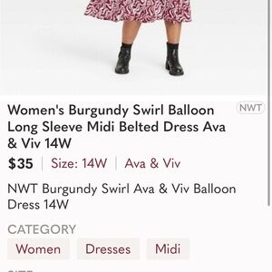 Ava & Viv Burgundy Swirl Balloon Sleeve Dress NWT