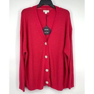 Ava & Viv Cardigan Womens Plus Size 1X Pink Rhinestone Button Down V Neck Ribbed. New with tags.
