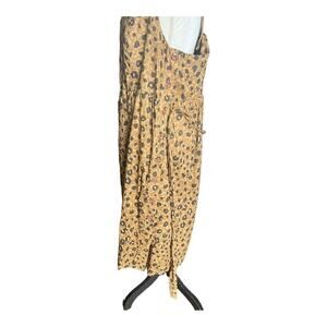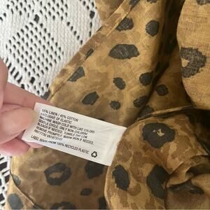 Ava & Viv Dress A Line Button Detail Tie Waist Linen Blend Leopard Brown 2X