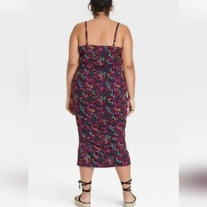 Ava & Viv Dress Size 2x Sleeveless Ruched Fitted Floral Print Bodycon Slip !