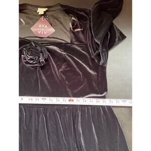 Ava & Viv Dress Womens 2X Black Velour Knee Length Rosette Pockets Cocktail NEW