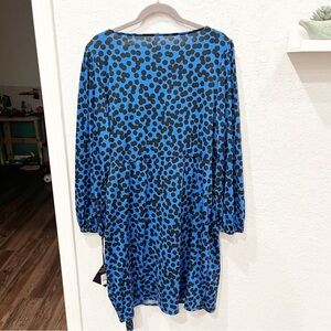 DETAILS: Ava & Viv dress women’s 2X, cobalt blue with black polka dots, side tie with faux wrap look. Poly spandex, machine wash.