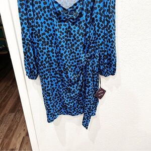 Ava & Viv Dress Women’s 2X Blue Polka Dot Faux Wrap Mini NWT