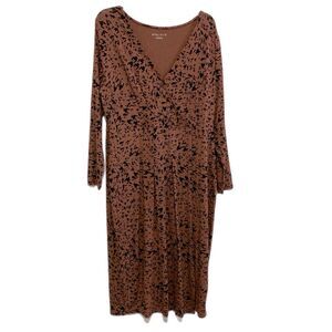 Ava & Viv Dress Women’s XXL Brown Black Animal Leopard V-Neck Faux Wrap Midi.