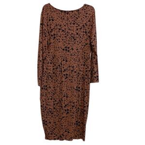 AVA & VIV DRESS WOMEN’S XXL BROWN BLACK PRINT CROSSOVER V-NECK FAUX WRAP MIDI