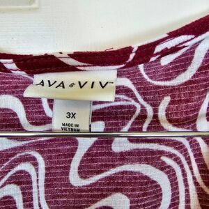 Make a fashion statement with this Ava & Viv midi dress in size 3X. Featuring a stylish faux wrap design, V-neckline, and balloon sleeves, this dress is perfect for any occasion. It comes with a belt to cinch in the waist for a flattering silhouette. The dress is made of high-quality fabric suitable for all seasons. The dress is versatile and can be worn to work, weddings, parties, or casual outings. It comes in a stunning white color with a geometric pattern that adds a touch of bohemian and hipster vibes. The dress is midi length and has long sleeves, making it an ideal choice for the fall and winter seasons. Get ready to turn heads with this classy and colorful dress from Ava & Viv.