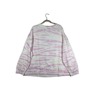 Ava & Viv Fleece Sweatshirt Tie Dye 1X Plus Pink White Drop Shoulder Crew Lounge