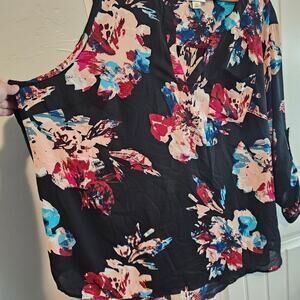 Ava & Viv Floral Blouse Women 3X Black Pink Floral Peasant Career Whimsygoth