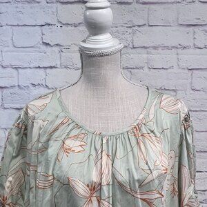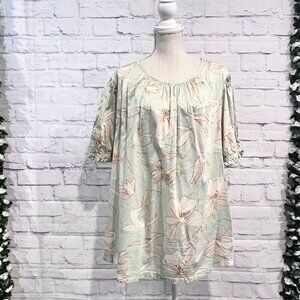 Ava & Viv Floral Print Short Sleeve Poplin Blouse Size 3X Peasant Top