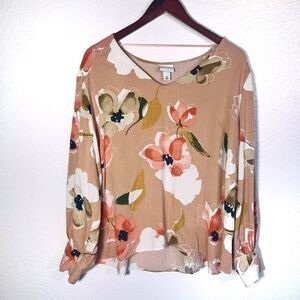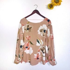 Ava& Viv Floral Puffy Bishop V-neck Blouse Plus Size 3X Women’s