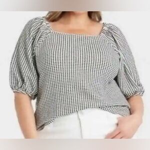 Ava & Viv Gingham Pouf Sleeve Plus Size Blouse