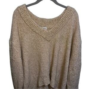 Ava & Viv Gold Sparkle V Neck Sweater Long Sleeve 1X Soft Sherpa Oversized Loose