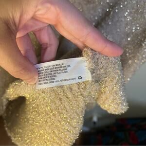 Ava & Viv Gold Sparkle V Neck Sweater Long Sleeve Soft Sherpa Oversized Loose Fit