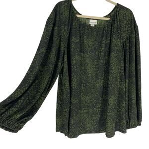 Ava & Viv Green Black Abstract Print Blouse Size 1X NWT