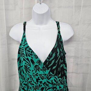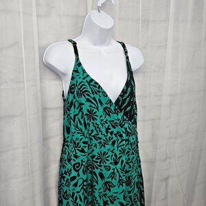 Ava & Viv Green Black Floral Boho Midi Dress Sleeveless Festival Hi-Low X