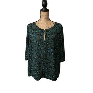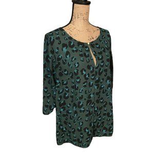 Ava & Viv Leopard Print Blouse in a size X. Really good condition. Laying flat pit to pit 22in. Length is 26in. Greenish blue color with a leopard print.