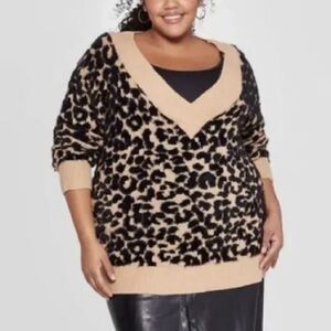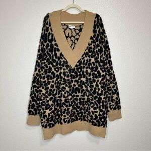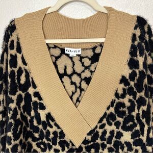 Ava & Viv Leopard Print Fuzzy V-neck Pull Over Sweater