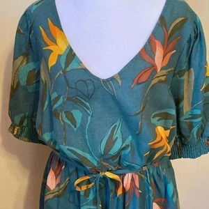 Ava & Viv Linen Blend Short Sleeve Dress w/ Bird of Paradise Pattern in Size X. Beautiful, rich colors. Hits about at the knee depending on your height. Great pre owned condition.