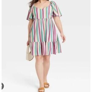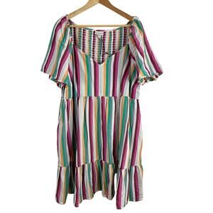 Ava & Viv Multi Stripe Tiered Dress Short Sleeve Size 2X Beachy