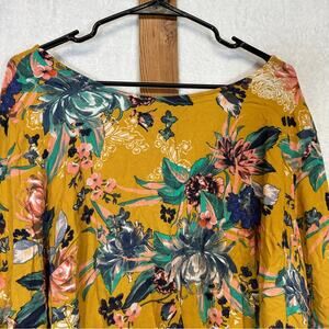Ava & Viv Mustard Floral Print 3/4 Sleeve Bell Sleeve Strappy Blouse