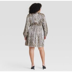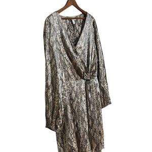 Ava & Viv NWT Snake Print Wrap Front Balloon Long Sleeve Dress Multicolor Size 2X