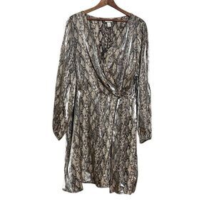 Ava & Viv NWT Snake Print Wrap Front Balloon Long Sleeve Dress Multicolor Size 2