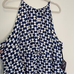 Ava & Viv NWT linen and rayon blue and white geo halter style sundress. Size 3X