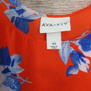 Ava & Viv Orange Floral Sleeveless 4X Blouse
