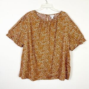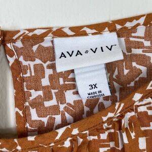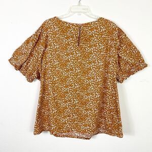 Ava & Viv Orange & White Patterned Puff Sleeve Shirt Blouse
