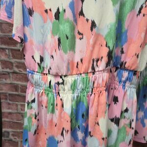 Ava & Viv Pink Floral Cinch Waist Top 3X V Neck Flutter Sleeve Lightweight Knit