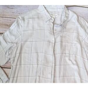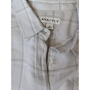 Ava & Viv Plaid Button Up Soft Flannel Shirt Women 2X Plus L/S Gray white