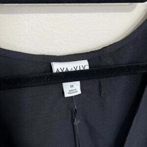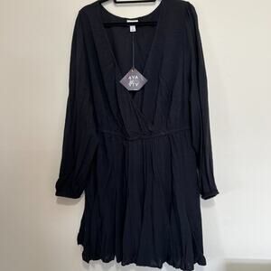 Ava & Viv Plus Balloon Long Sleeve Wrap Dress - Black - 1X - NEW