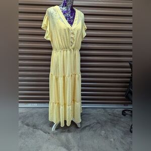 Ava & Viv Plus Size 0x Yellow & White Boho Country Chic Whimsical Maxi Dress