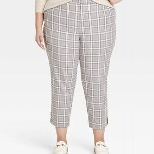 Ava & Viv Plus Size 20 Ankle Pants Cream Plaid High-Rise Tapered