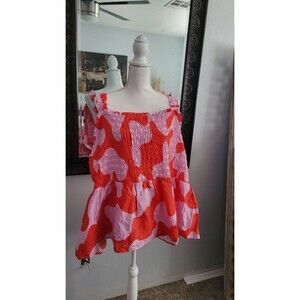Ava & Viv Printed Smocked Ruffle Peplum Tank Sz 4XL