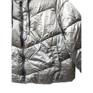 Ava Viv Puffer Jacket Short 2X Plus Winter Hood Coat Faux Fur Full Zip Silver